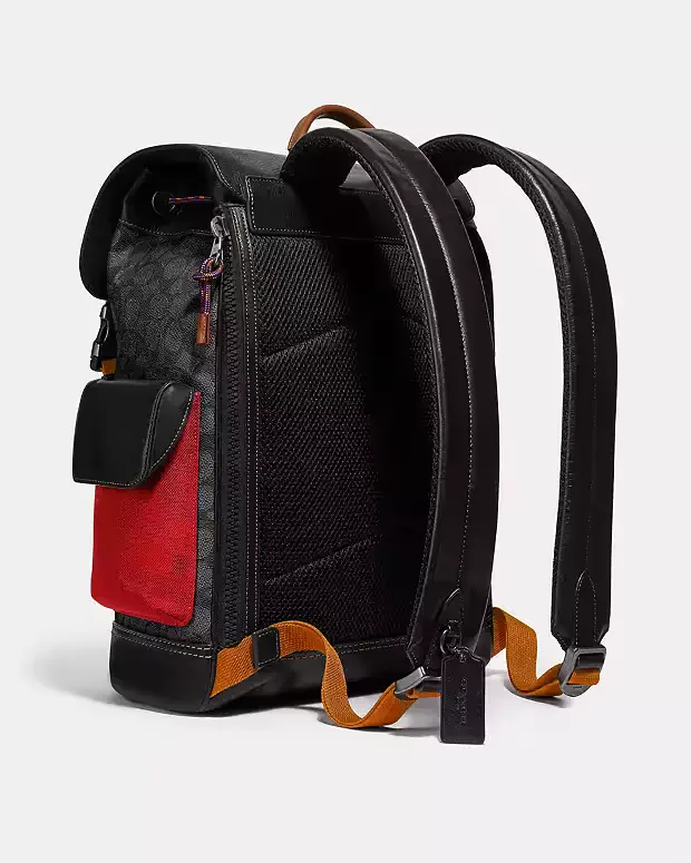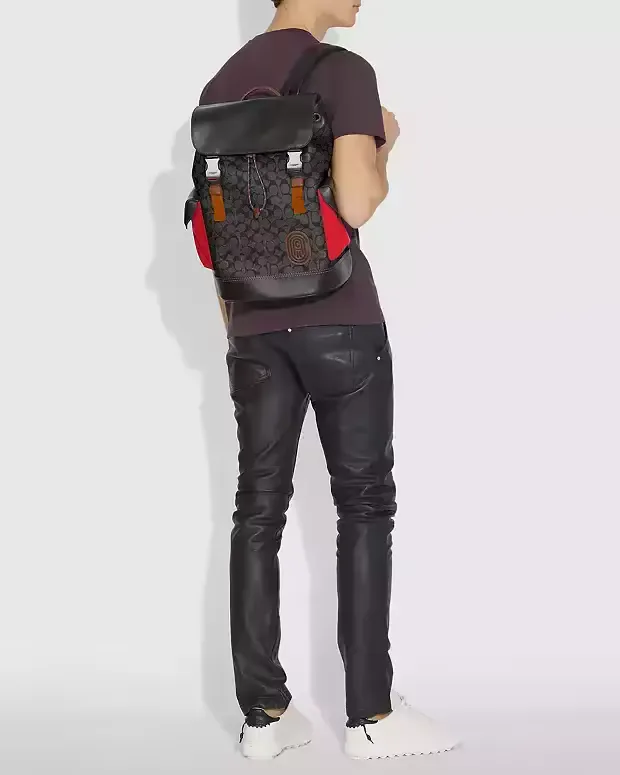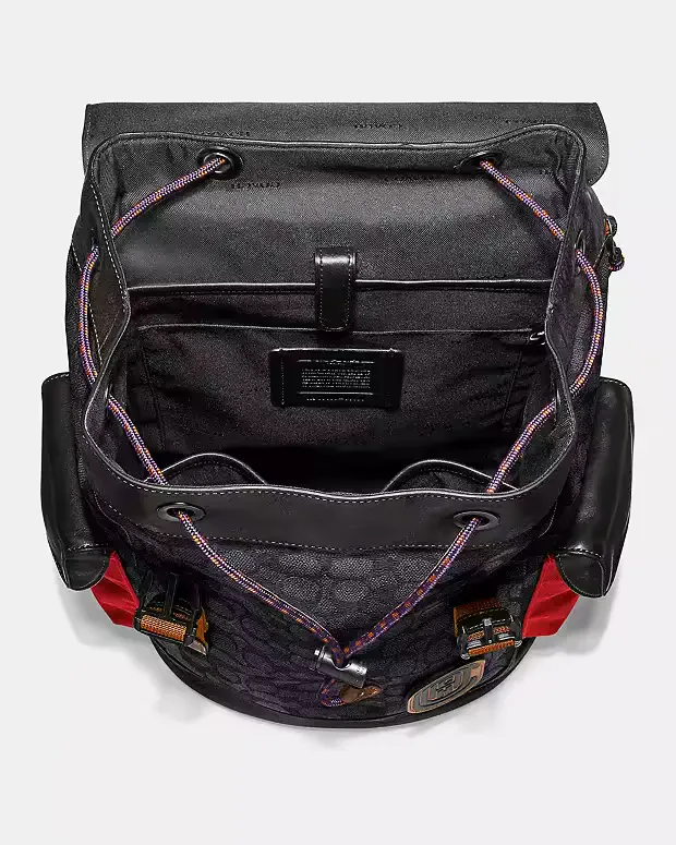 Мужской рюкзак Coach Rivington Backpack In Signature Canvas With Coach Patch - Black/Red