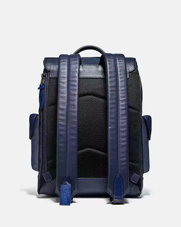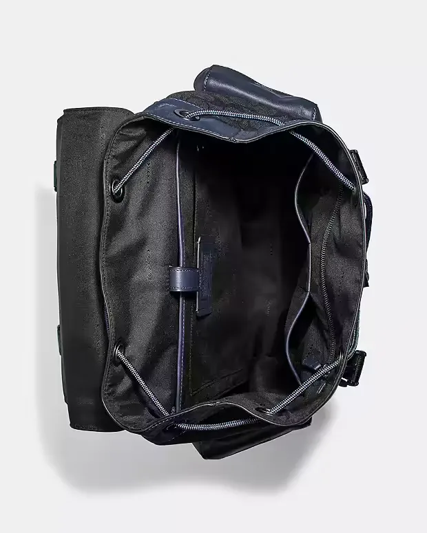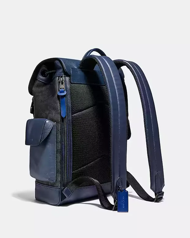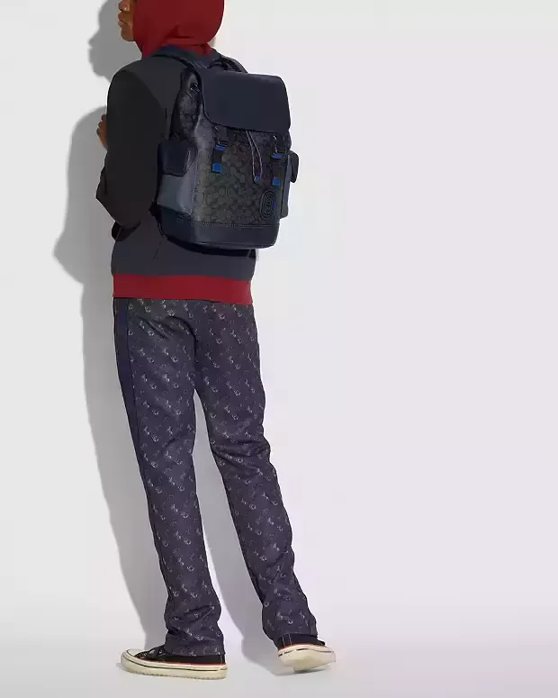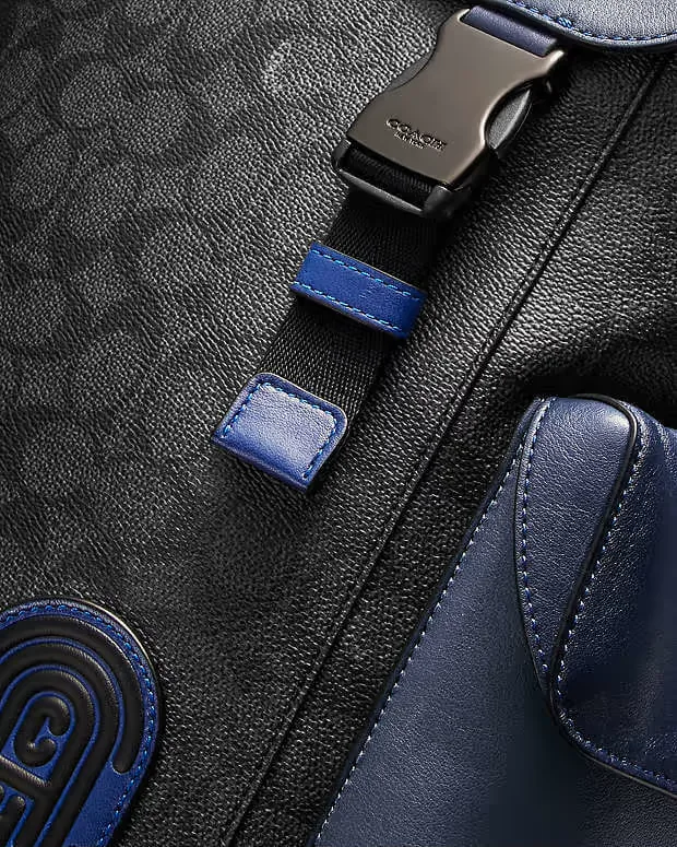 Мужской рюкзак Coach Rivington Backpack In Signature Canvas With Coach Patch - Black/Blue