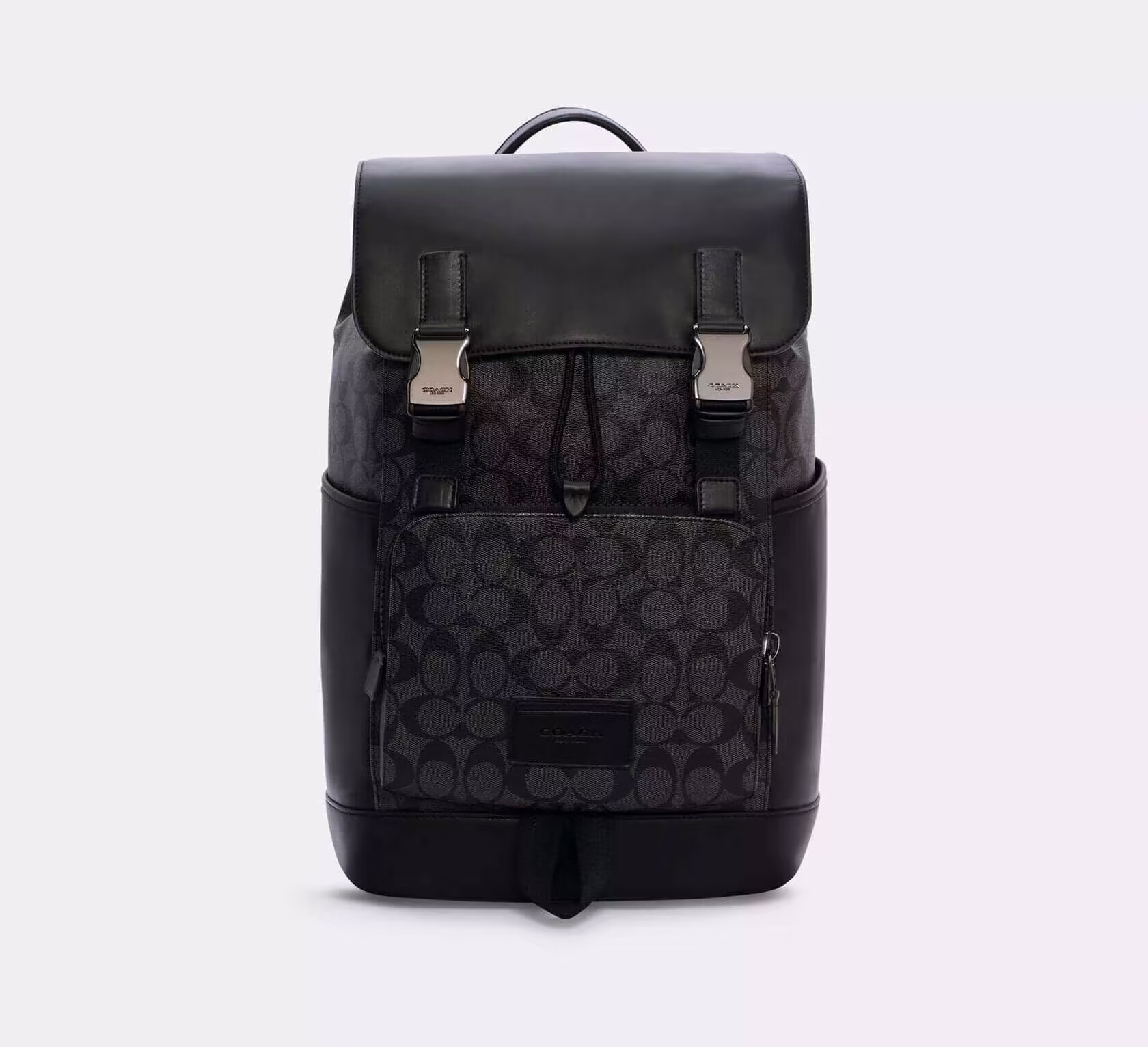 Мужской рюкзак Coach Track Backpack In Signature Canvas - Gunmetal/Charcoal/Black
