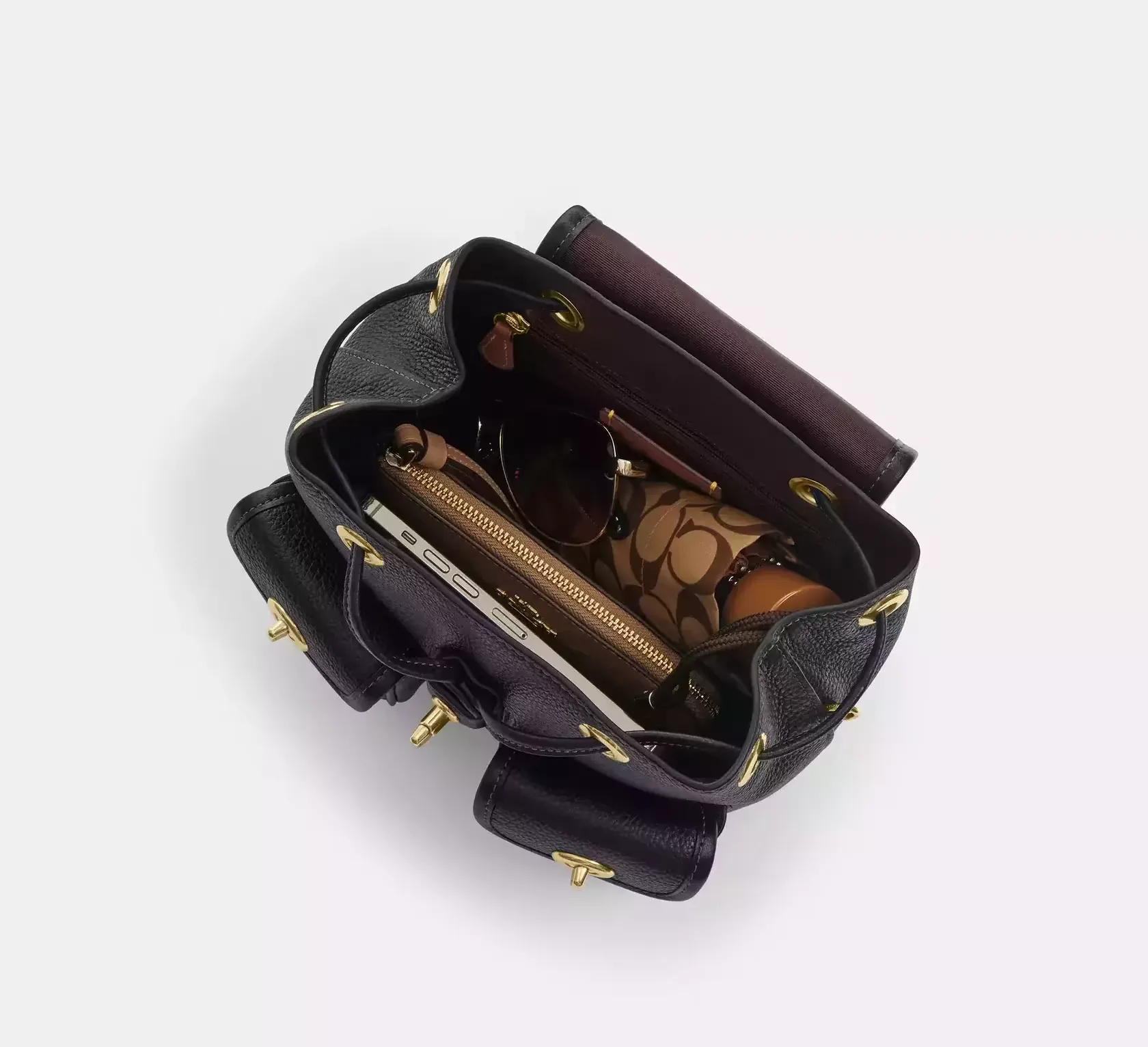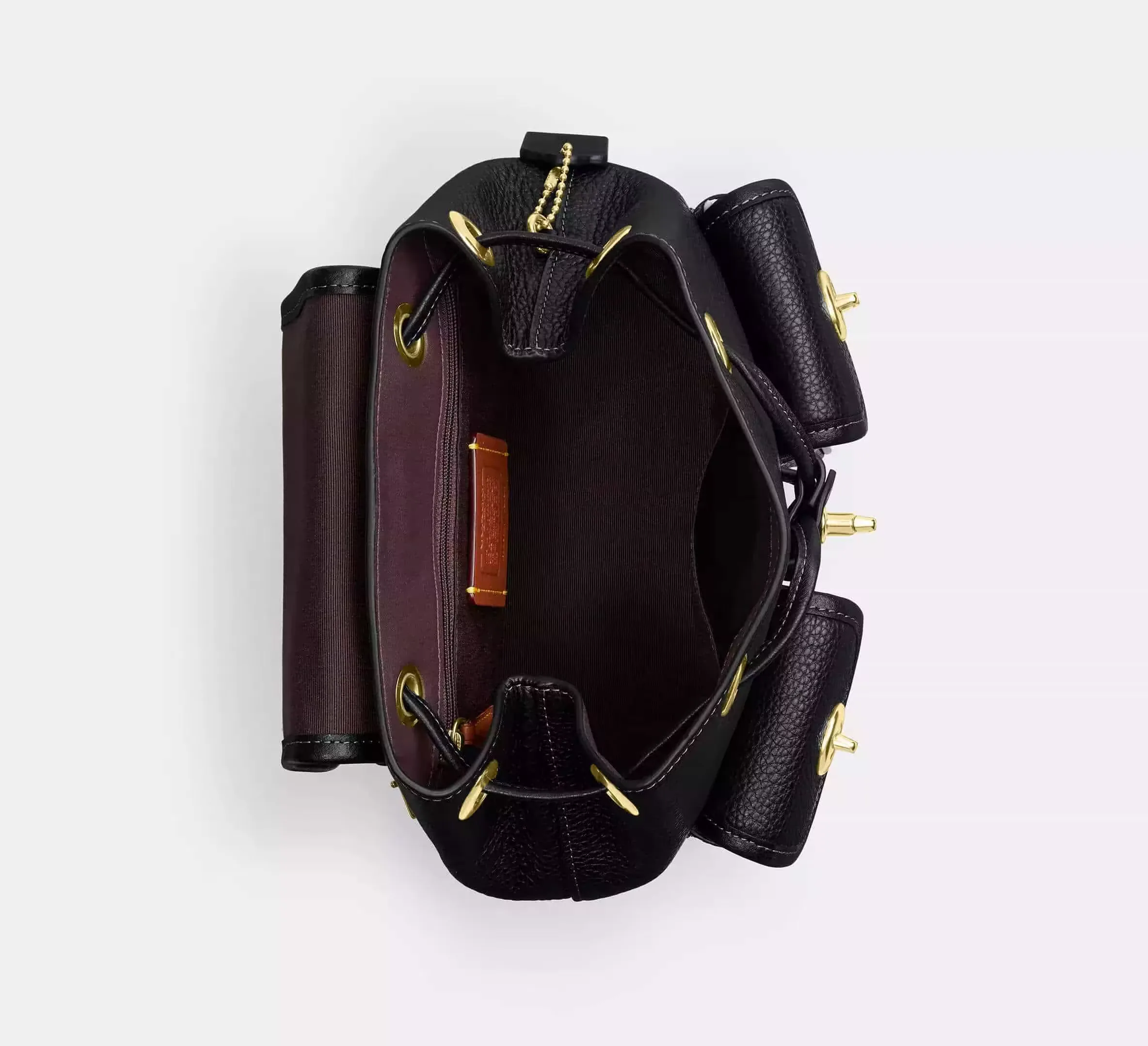 Женский рюкзак Сoach Hadley Backpack In Pebbled Leather - Gold/Black
