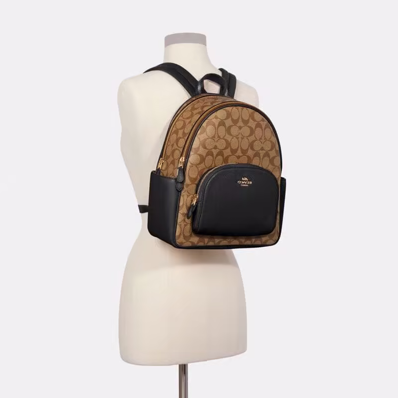 Женский рюкзак Coach Court Backpack In Signature Canvas – Im/Khaki/Black