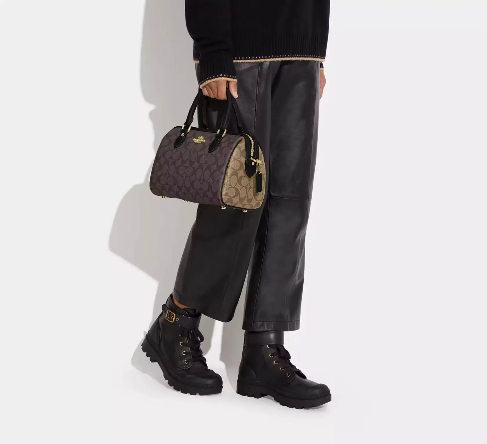 Rowan Satchel In Signature Canvas - Gold/Brown Black