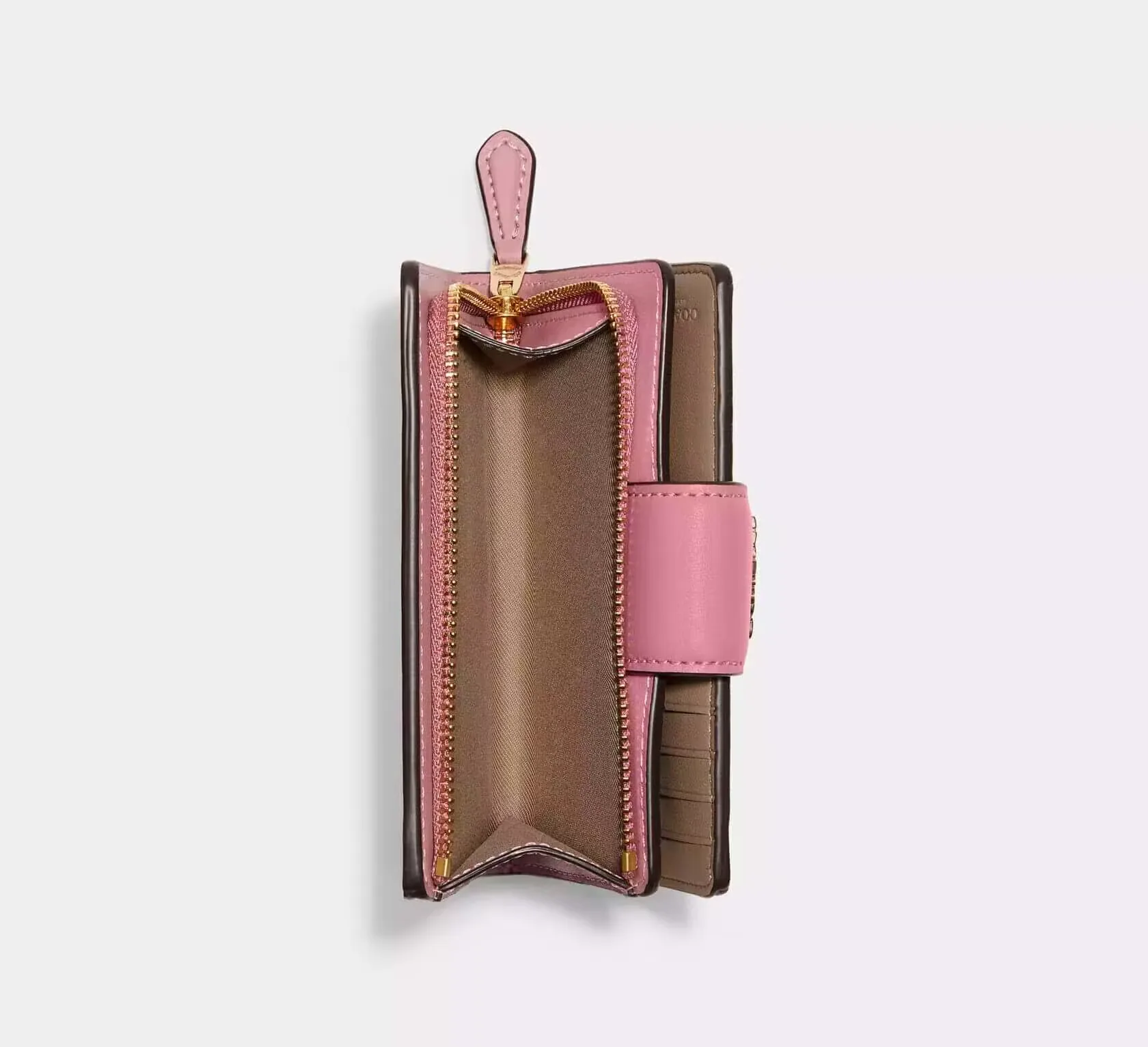 Практичный и компактный кошелёк с продуманной организацией пространства для повседневного использования. Это нежный и романтичный аксессуар, наполненный поэтичной эстетикой. Модель выполнена из гладкой кожи, украшенной изысканным принтом в виде лепестков, мягко перетекающих в изящные сердечки (Heart Petal Print). Утонченный дизайн создает образ, полный гармонии и нежности. Внутреннее устройство включает 7 слотов для кредитных карт, отделение для банкнот, карман на молнии для монет и окошко для удостоверения. Застёжка — кнопка (snap closure).