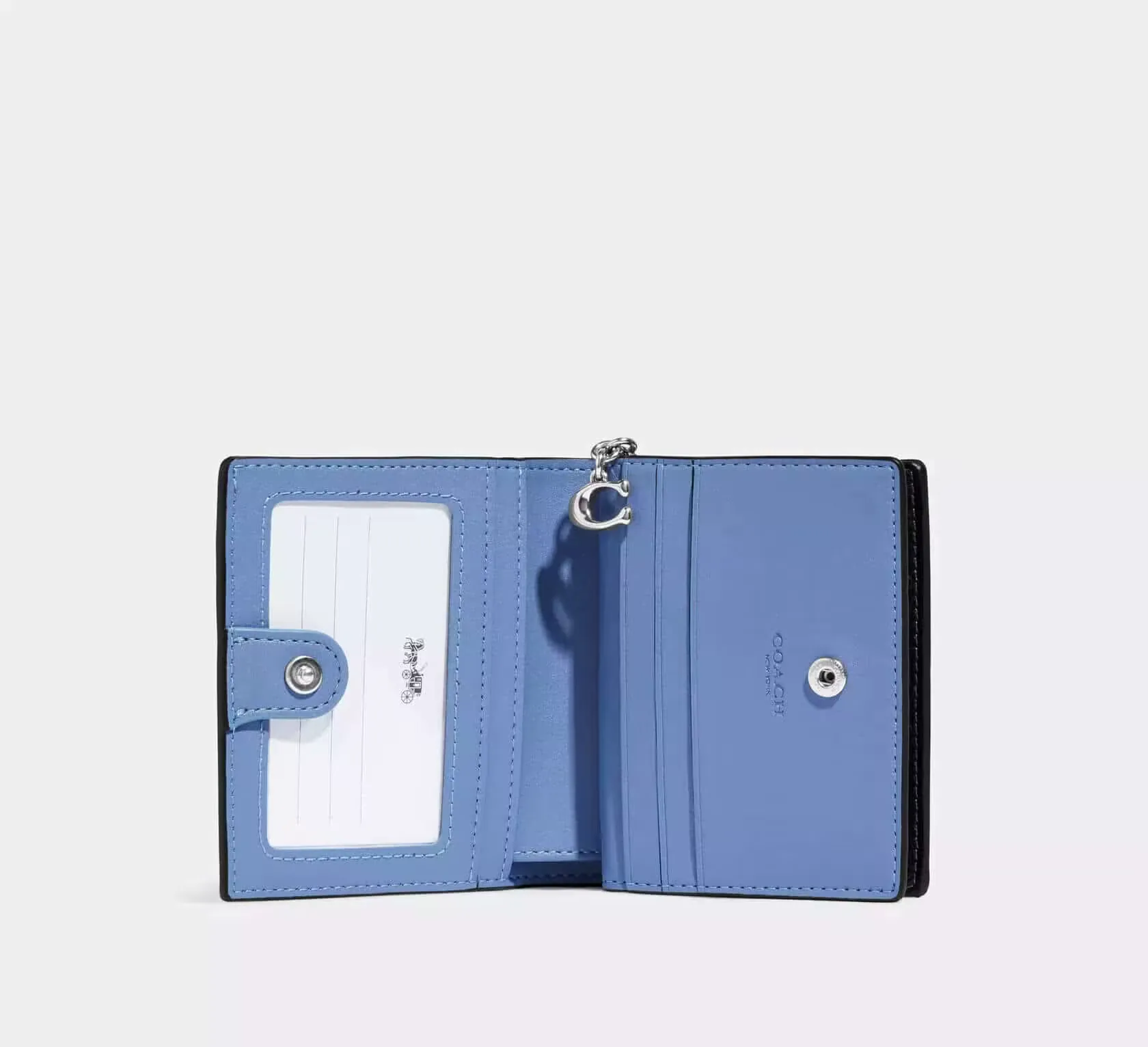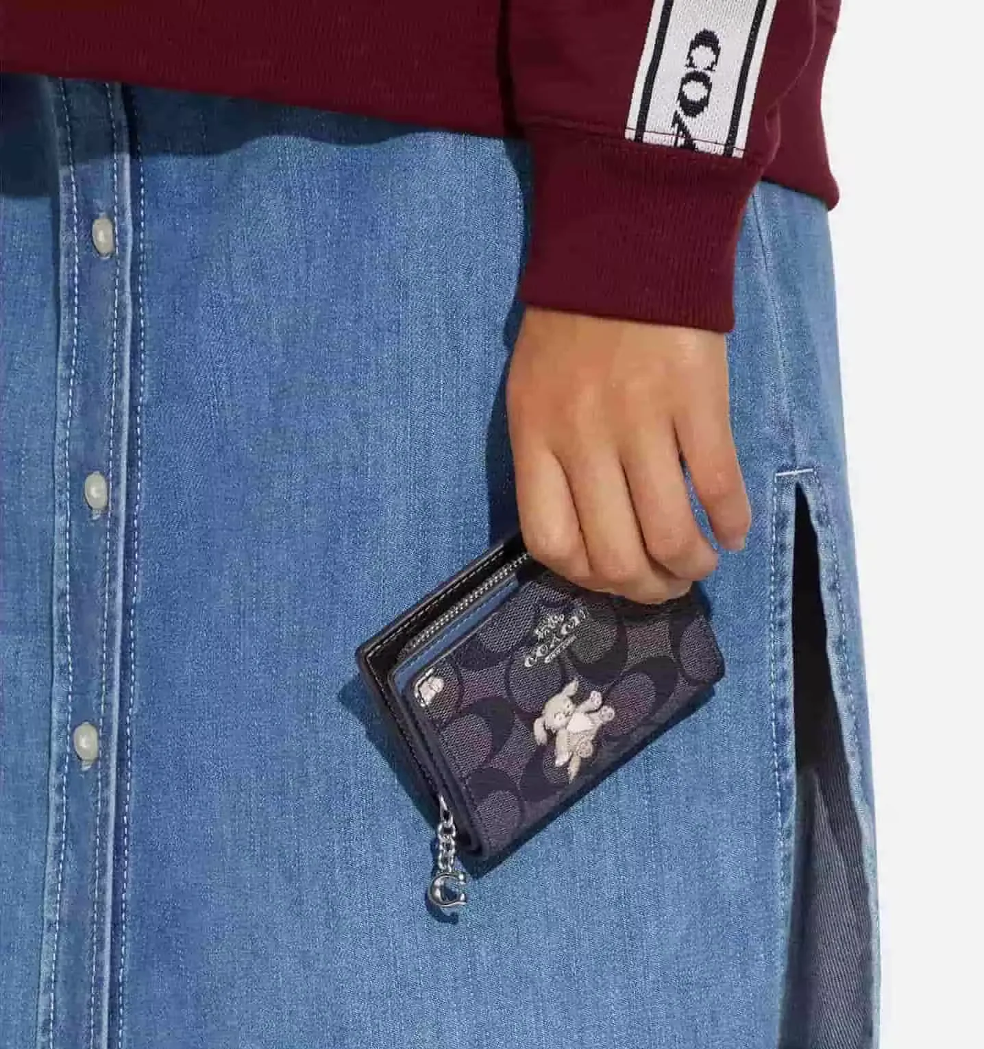 Кошелек Snap Wallet — компактный и практичный аксессуар, выполненный из фирменного полотна Signature coated canvas в серебристо-черном мультиколоре. Модель украшена игривым принтом "Счастливая собака" (Happy Dog Print), что создает динамичный и выразительный образ. Внутренняя организация включает 3 слота для кредитных карт, отделение для банкнот во всю длину, окошко для удостоверения личности и наружный карман на молнии для монет. Застежка на кнопке обеспечивает удобство использования. Этот кошелек идеально подходит для повседневного ношения в кармане или небольшой сумке.