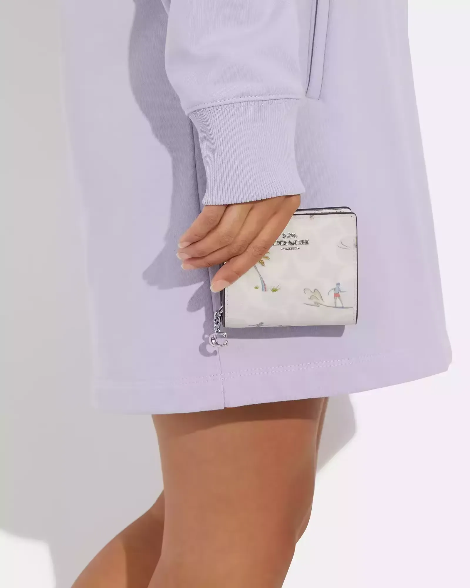 Кошелек Snap Wallet из фирменного полотна Signature coated canvas украшен ярким гавайским принтом (Hula Print) с традиционными мотивами, что создает атмосферу тропического праздника и беззаботности. Компактный и практичный, он предлагает все необходимое для организации платежных средств: отделение для купюр, слоты для карт и карман на молнии для монет. Застежка на кнопке обеспечивает надежность. Этот аксессуар идеально подходит для летнего сезона, отпуска или добавления нотки легкости в образ.