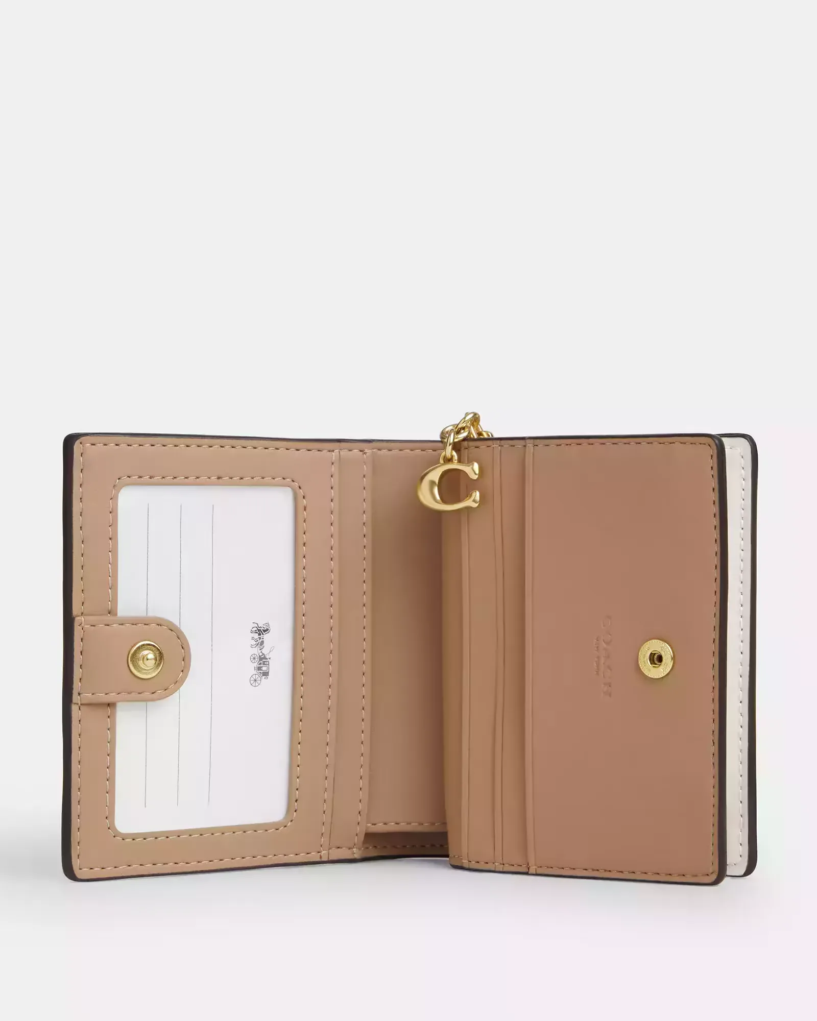 Кошелек Snap Wallet выполнен из гладкой белой фирменной кожи (Signature Leather), отличающейся долговечностью и способностью со временем приобретать уникальную патину. Лаконичный дизайн без лишних деталей подчеркивает премиальность материала и мастерство исполнения, делая аксессуар универсальным спутником. Несмотря на компактный размер, он предлагает продуманную внутреннюю организацию: отделение для банкнот, 3 слота для карт и съемный карман на молнии для монет. Застежка на кнопке обеспечивает надежность и удобство в использовании.
